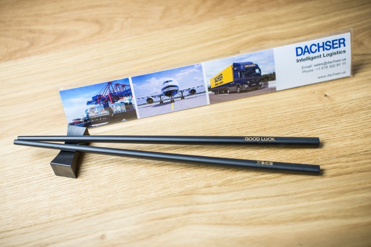 Anlässlich der Eröffnung in den USA durften wir für die Spedition DACHSER Essstäbchen gestalten und produzieren. Über das freundliche Feedback nach erfolgter Lieferung haben wir uns sehr gefreut. "Wir sind sehr zufrieden mit der Produktion, die unserem Qualitätsanspruch absolut gerecht wird...."
