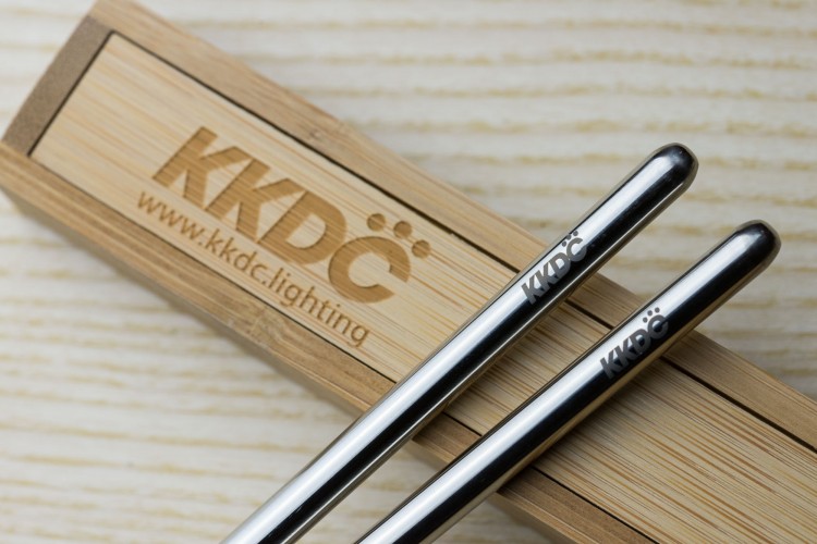 KKDC liefert spezialisierte LED-Beleuchtungslösungen für high-end-Architekturmärkte. Die hochwertigen Produkte werden in Südkorea gefertigt.  Als Werbegeschenk lieferten wir für KKDC schon mehrfach Edelstahl-Chopsticks mit Lasergravur die besonderen Kunden in einer schicken Bambusholzbox mit passend gebrandetem Schiebedeckel überreicht werden.